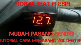 MUDAH!! Tutorial cara memasang voltmeter di honda beat fi esp 2016 || modifikasi voltmeter di motor