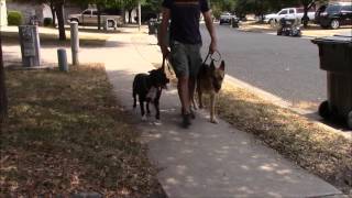 Riley(the black pit-bull) is very dog and people reactive. This is an exercise to help rehabilitate a reactive dog. Often we will go on much longer walks in order to keep the reactive dog relaxed.